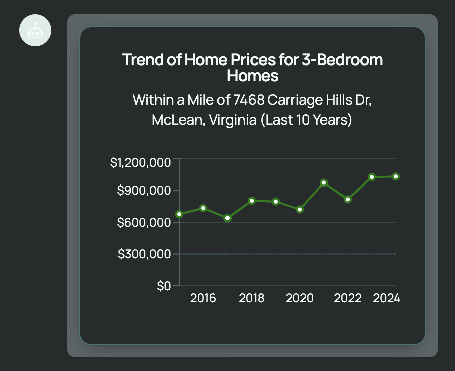Let’s say I own a single-family home in the Virginia area; I purchased this home in 2020 and am considering selling it to purchase another home in the area. I’d like to know about how the market in the area is faring, in the context of both the county market, as well as within a mile radius of the home.